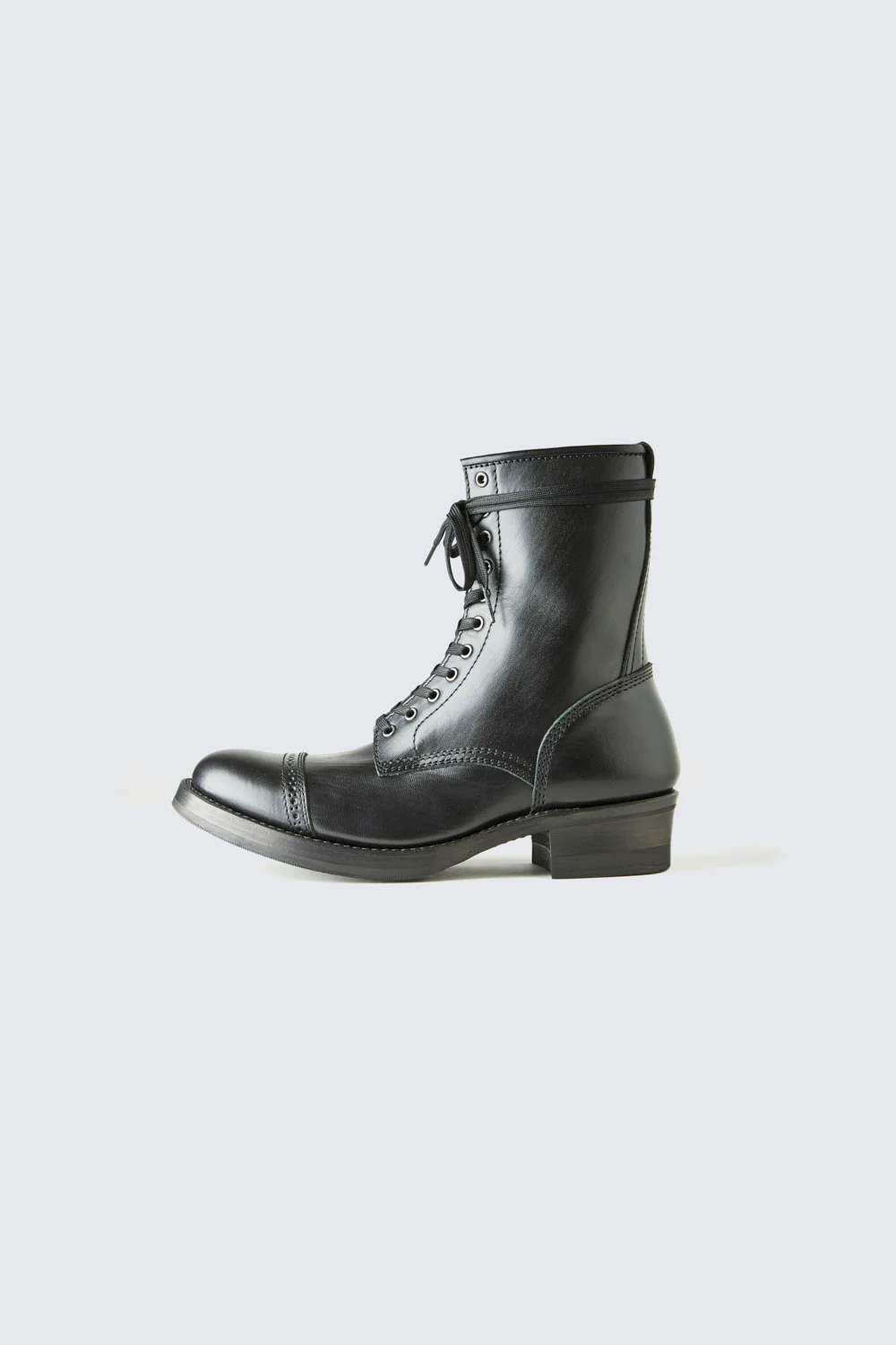 A LONG-LENGTH VERSION OF AUTHENTIC LACE-UP BOOTS CREATED WITH ST LAST WITH A CAP TOE ADDED